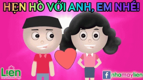 Cartoon boy and girl invite to date, expressing 'I Love You' with a heart between them.