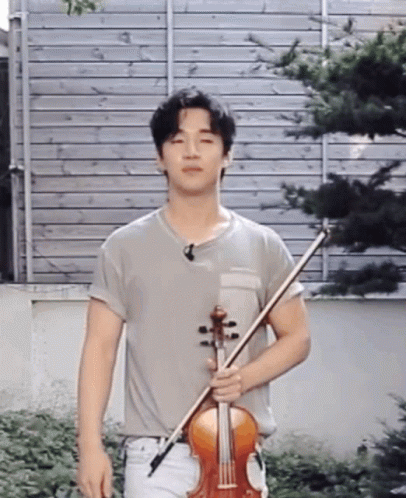 Henry Lau bows with his violin, expressing 'Thank you' in Korean and English.