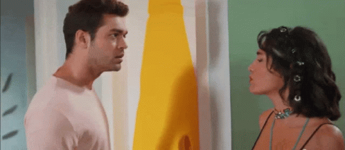 Aybuke Pusat and Furkan Andic from "Her Yerde Sen" share a tense, emotional moment in the "Sel Dem" scene.