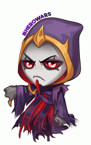 A cartoon character from Hero Wars: Chronicles of Chaos, a grim reaper-like figure, showing strong disapproval.