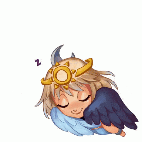 Herowars character Celeste, the angel princess, sleeps peacefully with Z's floating around her.