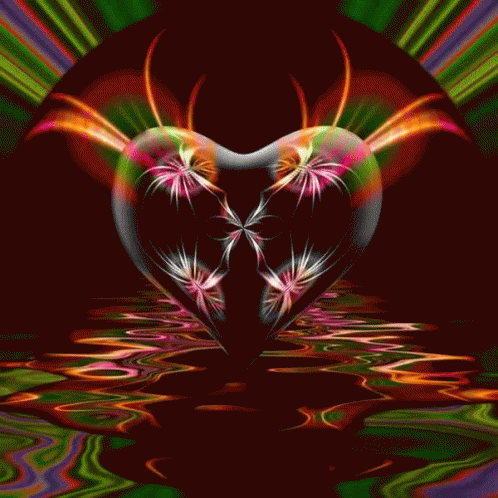 A vibrant, colorful heart floats gently in water against a stark black background, creating a striking visual.