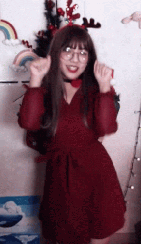 Heybbibbi Bbibbi and Luna, a Korean streamer, dancing in a festive red dress with a Christmas theme.