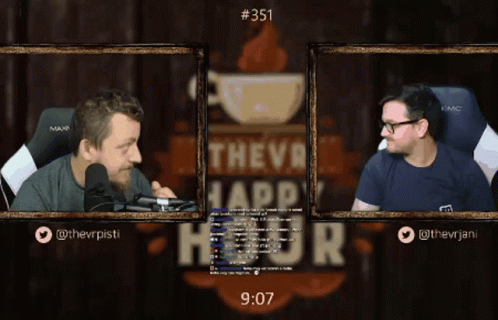 Two men host TheVR Happy Hour, discussing topics in episode 351.