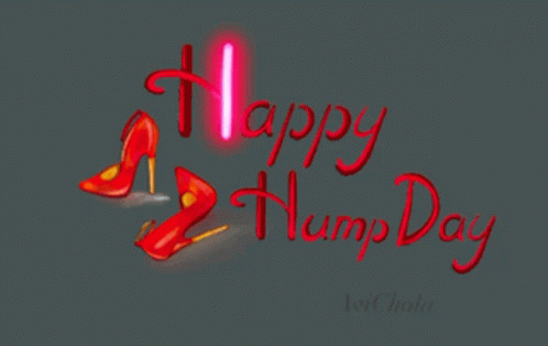 A vibrant graphic wishing Happy Hump Day, featuring stylish red high heels and credited to Avi Chola.