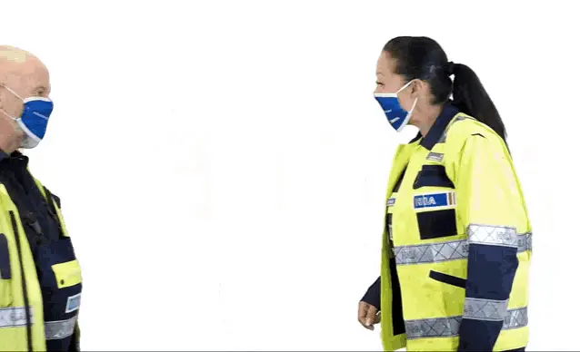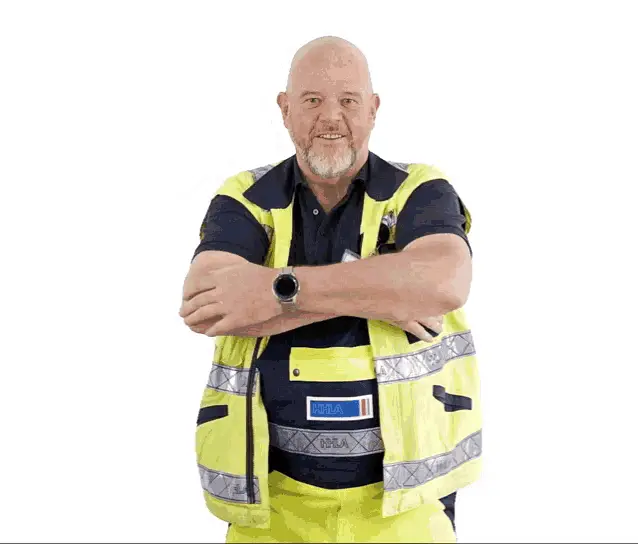 A woman in HHLA overalls performs a facepalm, expressing shock or embarrassment.