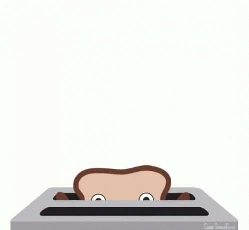 A cheerful cartoon toast pops out of a toaster, waving and saying 'Hi!'.
