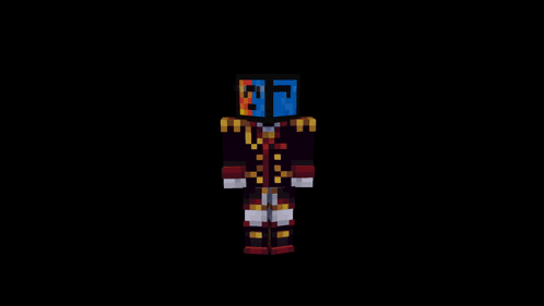 A Minecraft character, possibly Voscing, with a colorful face and ornate uniform, waves hello.