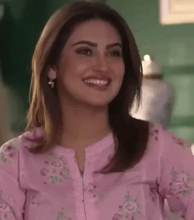 Hiba Nawab and Shaheer Sheikh share a sweet moment, looking at each other with smiles.