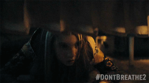 Madelyn Grace as Phoenix hides under a bed, terrified, in a scene from Don't Breathe 2.