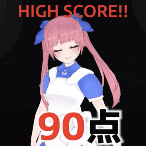 Omega Sisters celebrates a high score of 90 points with a satisfied expression and fist pump.