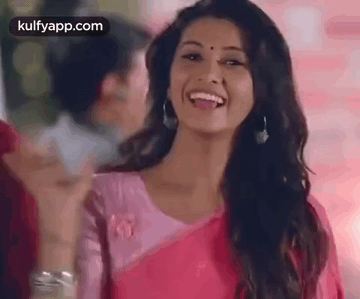 Priya Bhavani Shankar from Meyatha Maan smiles and waves in a pink saree, conveying a friendly greeting.