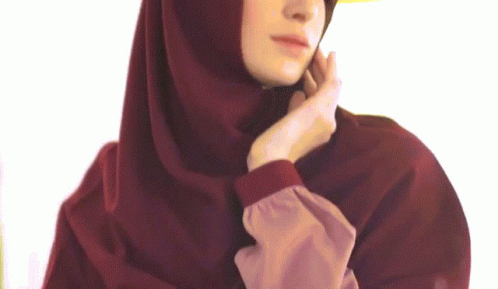 Ozel1 poses gracefully in a maroon hijab scarf, gently touching her face with her hand.