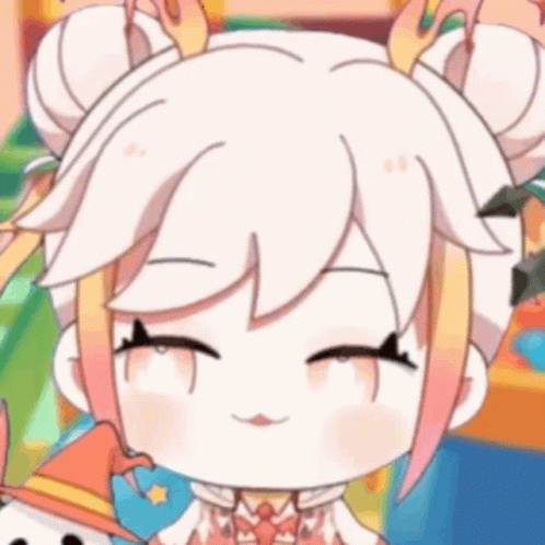 Hinabe Hong Fei, a cute anime character, smiles with closed eyes and a small tongue out, wearing a pink outfit.