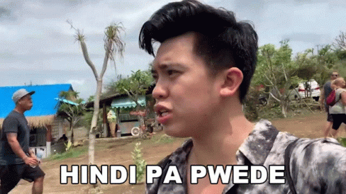 Kimpoy Feliciano says 'Hindi Pa Pwede' (Not Yet Allowed) in an outdoor setting.