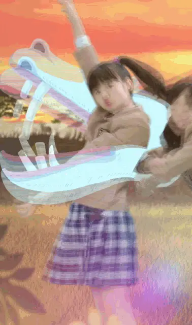 loadingAsian Girl Dancing with Cartoon Hippopotamus