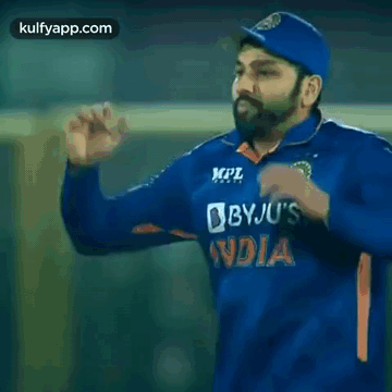 Indian cricket captain Rohit Sharma, also known as Hitman, claps enthusiastically on the field, encouraging his team.