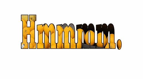 The word 'Hmmm.' filled with changing fruit, from lemons to peaches, creating a contemplative visual.