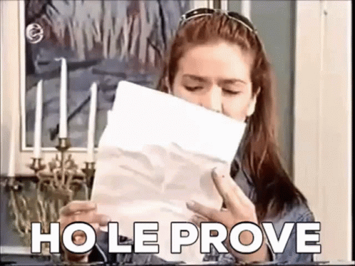 A woman holds a piece of paper to her face, emphatically stating 'Ho Le Prove' (I Have Evidence).