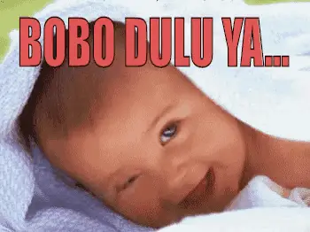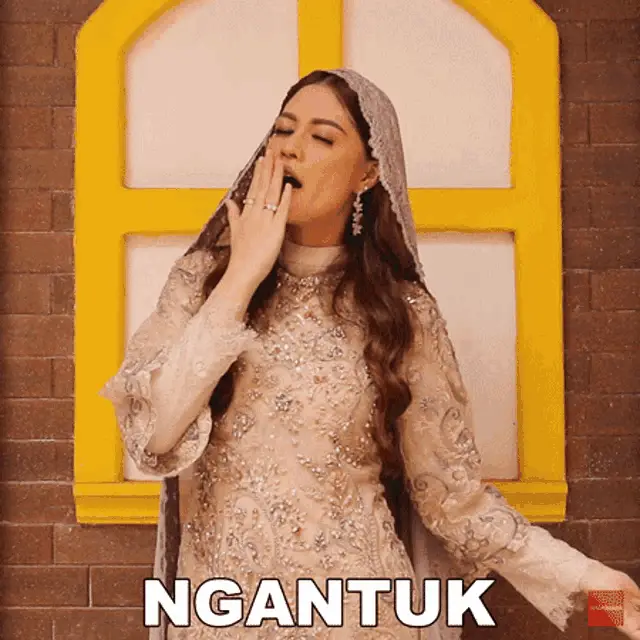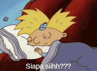 Cartoon character Si Ucup yawns with 'HOAM' text, depicting sleepiness and tiredness.
