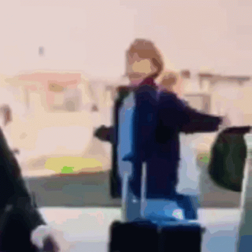 Hobi spinning playfully with luggage, likely during a Bon Voyage trip, captured in a blurry video.