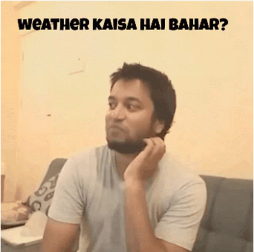 Hoezaay reacts to the question "How is the weather outside?" with a smile, sitting on a couch.