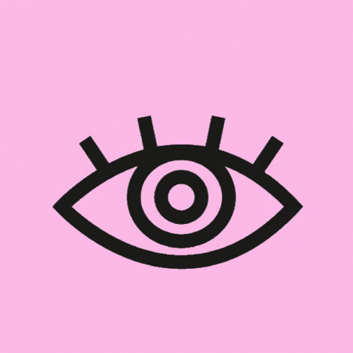 Animated black eye with a circular pupil on a pink background, opening and closing in a continuous loop.