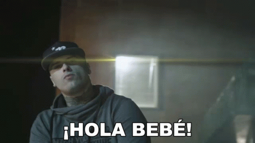Nicky Jam, wearing a hat and grey hoodie, greets the viewer with '¡Hola Bebé!' in a direct address.