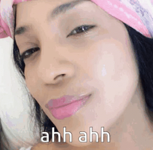 A woman smiling and looking at the camera with 'ahh ahh' caption.