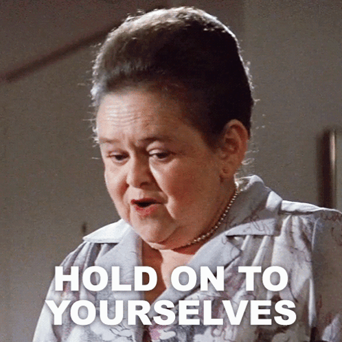 Tangina (Zelda Rubinstein) delivers her iconic line, 'Hold On To Yourselves,' with a concerned expression.
