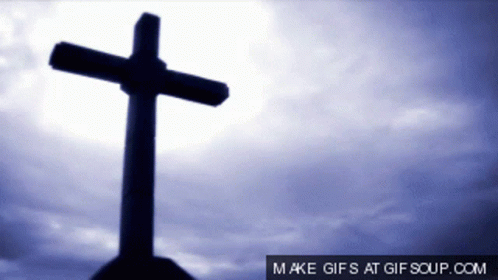 A cross silhouetted against a dramatic, cloudy sky, evoking a sense of reverence and spiritual reflection.