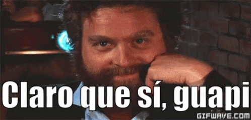 Bearded man winks and says 'Claro que sí, guapi' (Of course, handsome/pretty) in a flirty manner.