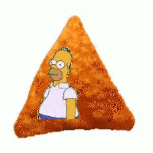 Homer Simpson's head and body are superimposed onto a Dorito chip, then shrink into it.