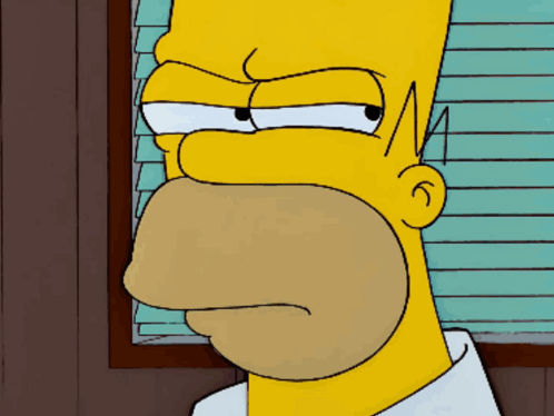 Homer Simpson, also known as Homero, looks suspicious and distrustful with a narrowed gaze and furrowed brow.