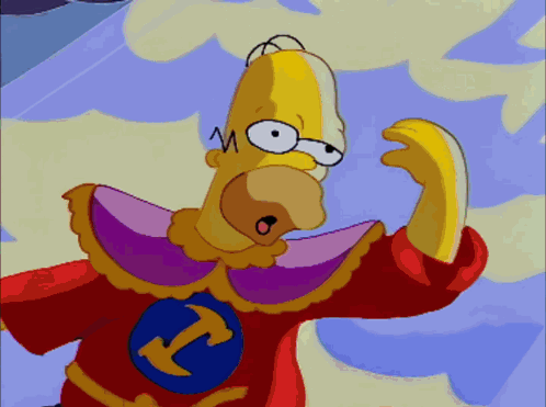 Homer Simpson is depicted as a god-like figure in a painting, then seen relaxing at home.