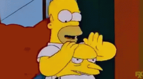 Homer Simpson holding Mr. Burns' head, making a funny face while Mr. Burns looks annoyed.