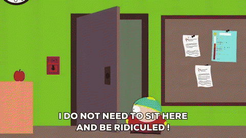 Cartman, from South Park, dramatically declares he's going to be home-schooled after feeling ridiculed.