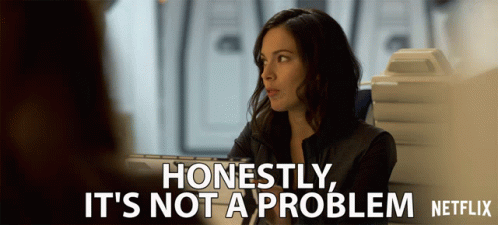 Aria De Maris, also known as Izabel Azevedo, calmly states 'Honestly, it's not a problem' in a futuristic setting.