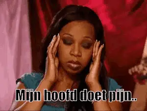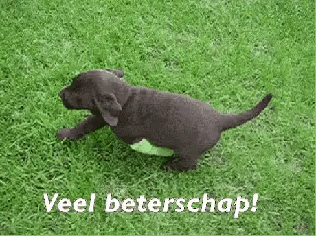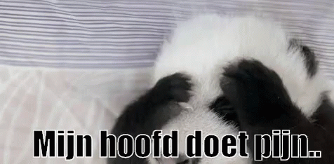 A cute black and white puppy covers its face, expressing "My head hurts."