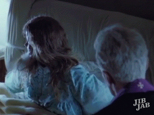 A JibJab parody of The Exorcist, featuring Linda Blair's character in a classic horror scene.