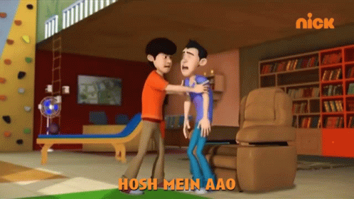 Gattu is shaken by his friend, with the Hindi phrase 'Hosh Mein Aao' (Come to your senses) displayed on screen.