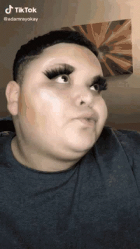 Hotgirldj Rosa with fake eyelashes and nose ring, making an expressive face.
