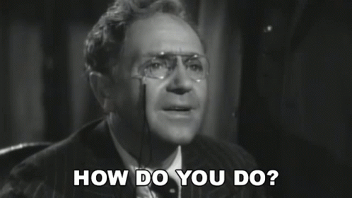 Stanley Ridges, as George Kingsley, greets someone with "How Do You Do?" in a classic black and white scene.