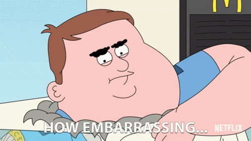 Paradise PD's Dusty Marlow, voiced by Dana Snyder, expresses embarrassment in this animated moment.