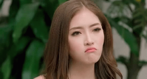 Meena from Ghiền MìGõ makes a sassy, pouting face and turns away in front of a green plant.
