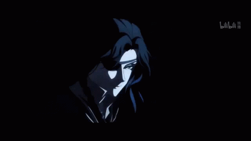 Hua Cheng San Lang, the Ghost King from Tian Guan Ci Fu, smiles mysteriously in the dark.