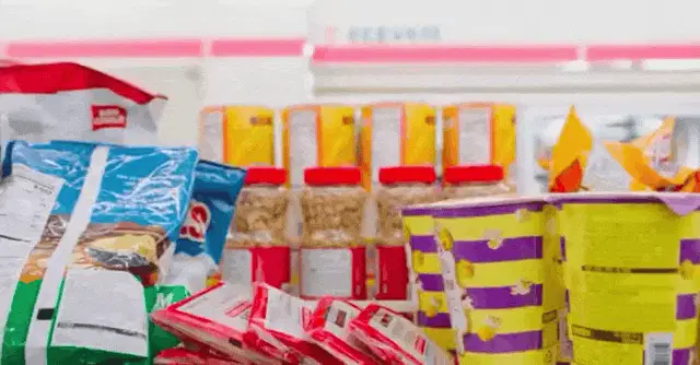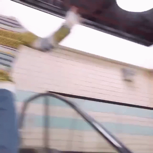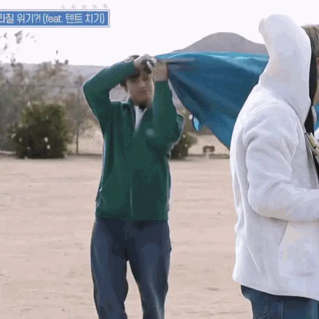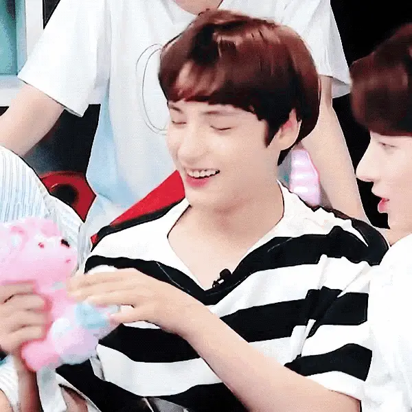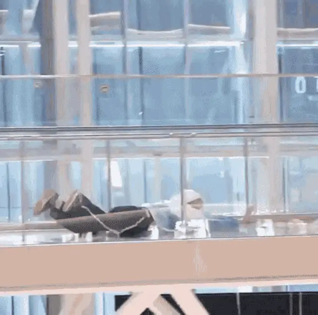 Hueningkai from TXT smiling and moving playfully on an escalator, creating a fun meme moment.