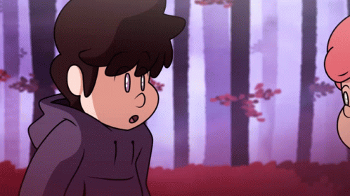 Nate and Zoe share a comforting hug in a vibrant, purple-hued forest, showing deep friendship and love.
