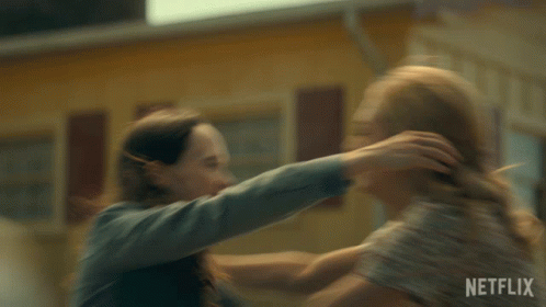 Vanya Hargreeves (Ellen Page) shares an emotional hug with another woman (Marin Ireland) from The Umbrella Academy.