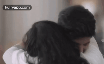Dulquer Salmaan shares a warm hug with a woman, smiling happily in a scene from '100 Days of Love'.